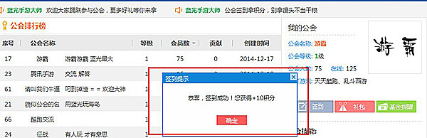1,每天签到。加入公会,签到一次奖励10积分(小编:每天签到一次就能至少抽奖一次啦)