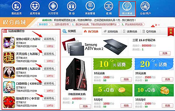 2,试玩有礼。在积分商城下载“试玩有礼”的游戏,就能获得相应的积分,每个游戏都是至少10分。(小编:为了安全起见,试玩有礼的积分,要等一个小时才会到账呢,小伙伴们要注意一下)