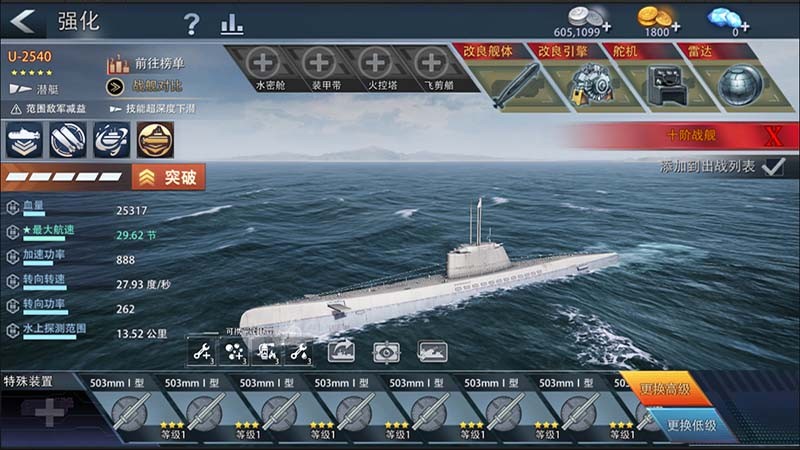 如深海中无声的梦魇,已悄然加入战场!它能够潜航于声纳探测的盲区,实现近乎完美的战场隐形。配合鱼雷,可在敌方毫无警觉之际发动突袭,实现“发现即摧毁”的终极猎杀!